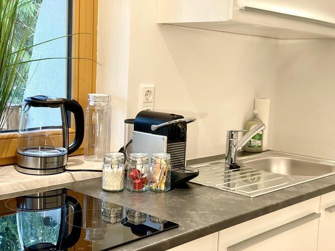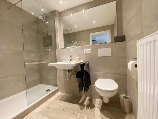 The new apartment is equipped to a high standard, kingsize bed, kitchen with dishwasher, coffee machine, kettle, refrigerator with freezer compartment, stove with oven modern bathroom with shower, covererd terrace with furniture, own parking space and separate entrance. Minimum stay 2 nights, 5 in high season, payment cash on site or by bank transfer. Tax per overnight of 3,50 per day and person is charged extra.