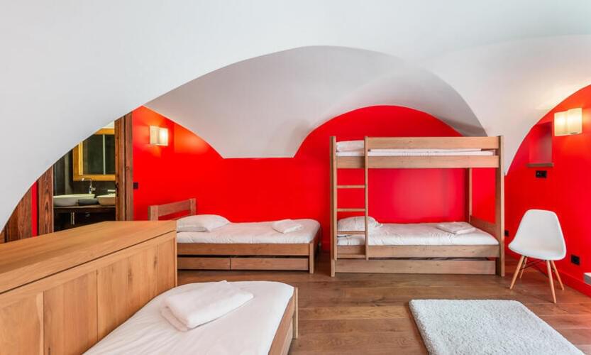 - Otroška spalnica z 3 enojnimi posteljami in pogradom z lastno kopalnico