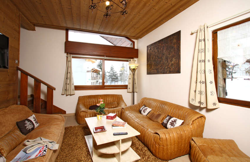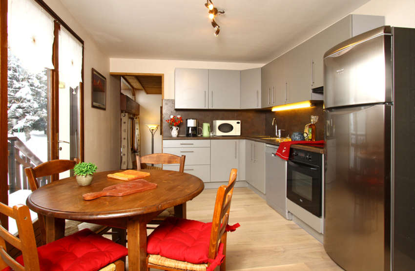 Lounge s kaminom Jedilnica Sleeping alcove s pogradi 4 dvoposteljne sobe 1 spalnica z ločenima posteljama 1 spalnica z zakonsko posteljo in pogradi 3 kopalnice in 3 stranišča Kuhinja (steklokeramična kuhalna plošča, zamrzovalnik, hladilnik, pečica, mikrovalovna pečica, opekač kruha, raclette stroj, pomivalni stroj, kavni avtomat), pralni stroj, TV z ravnim zaslonom, dostop do interneta, savna, jacuzzi.