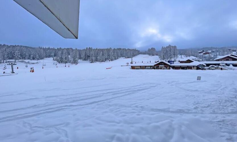 Prost pogled na smučišča brez nasprotne strani, velik balkon na jugu s mizo in stoli.