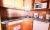- Opremljena kuhinja: z mikrovalovno pečico, pomivalnim strojem, 4 steklokeramičnimi ploščami, hladilnikom, toasterjem, grelnikom vode, kavnim aparatom.