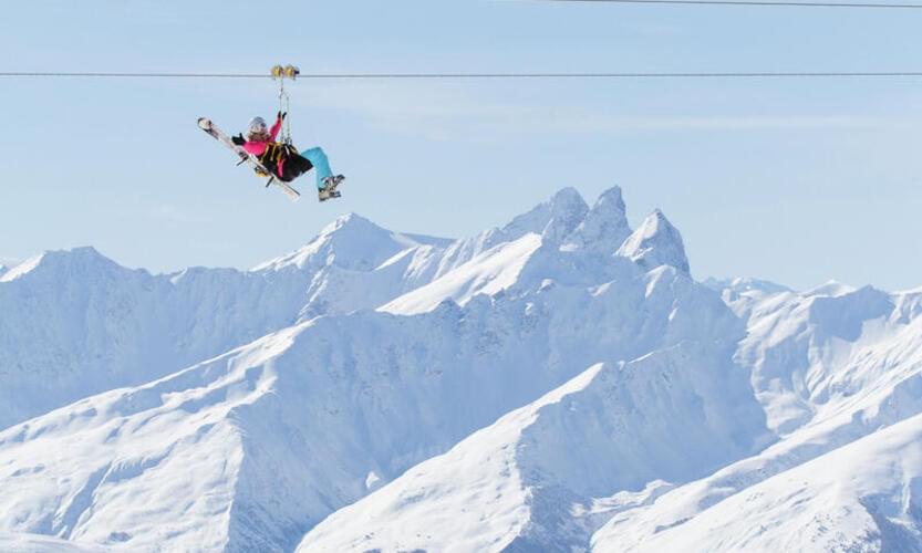 Ponuja pogled na postajo in živahno ulico Val Thorens.