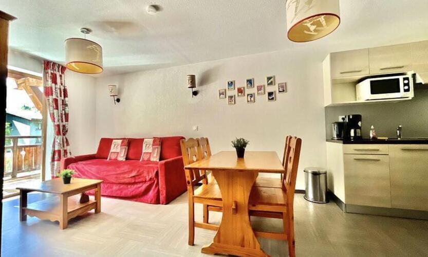 Povečajte svoje počitnice v gorah s tem T2 apartmajem s bazenom, ki je popolnoma zasnovan za prijetno bivanje v družbi družine ali prijateljev, tik ob smučišču in neposredni bližini sedežnice Sainte Marie.