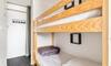 Oprema dnevne sobe: 1 raztegljiv kavč (2 ležišči). Kabina z vrati: 2 enojni postelji nadstropno. Jedilni kot: