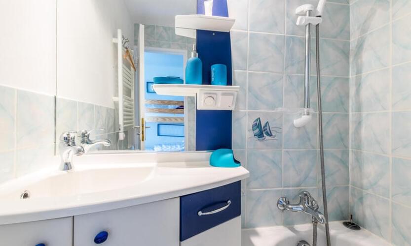 Vaše počitniško bivanje vključuje: 1 udobno dnevno sobo, 1 sodobno kuhinjo, 1 kabino, 1 kopalnico, 1 ločen WC in balkon.